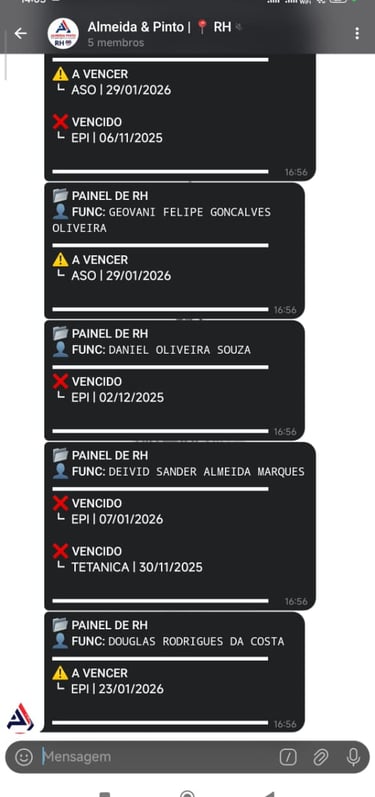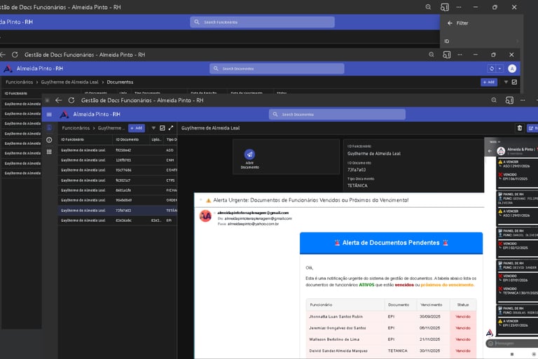 A Almeida Pinto Locações de Máquinas e Equipamentos LTDA possui um quadro de colaboradores cujas documentações exigem acompanhamento constante, incluindo registros funcionais, contratos, treinamentos obrigatórios, certificados de capacitação, exames ocupacionais e habilitações específicas. Cada um desses documentos possui prazos de validade e exigências legais que demandam controle preciso, rastreável e atualizado.