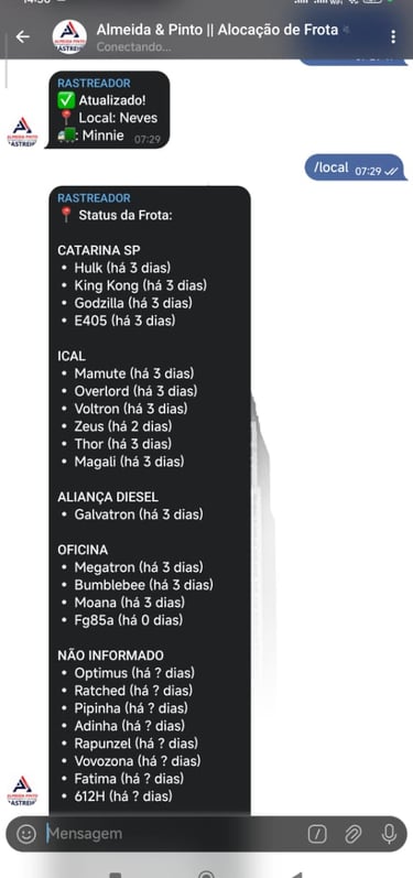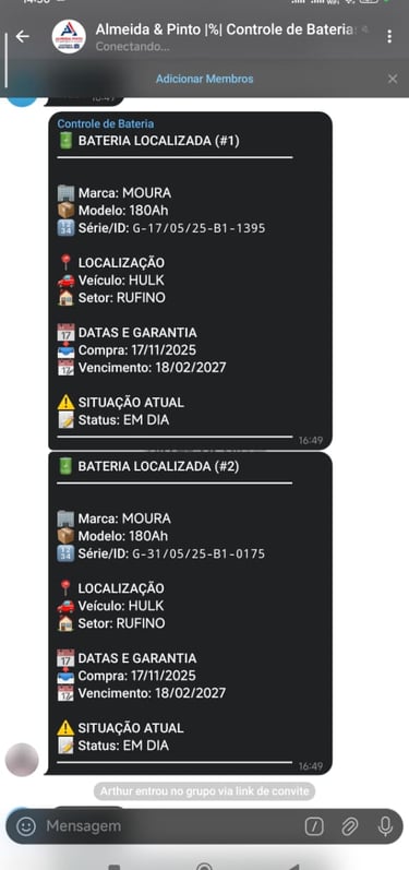 Complementando essa automação, o sistema conta com integração ao Telegram, proporcionando uma forma prática, ágil e acessível de visualização das informações. Por meio dessa integração, gestores podem acompanhar status documentais, receber notificações e consultar dados de maneira imediata, sem a necessidade de acesso direto às planilhas, o que aumenta a eficiência no dia a dia e agiliza a tomada de decisão.