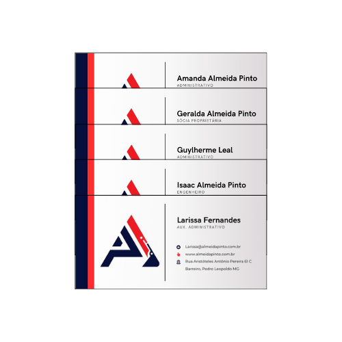 Cada detalhe desse projeto foi cuidadosamente pensado para alinhar estética e funcionalidade, garantindo que a identidade visual da empresa esteja presente em todos os pontos de contato com clientes, parceiros e fornecedores. Acredito que esses materiais não são apenas complementos visuais, mas ferramentas estratégicas que agregam valor e consolidam a presença da Almeida Pinto no mercado.